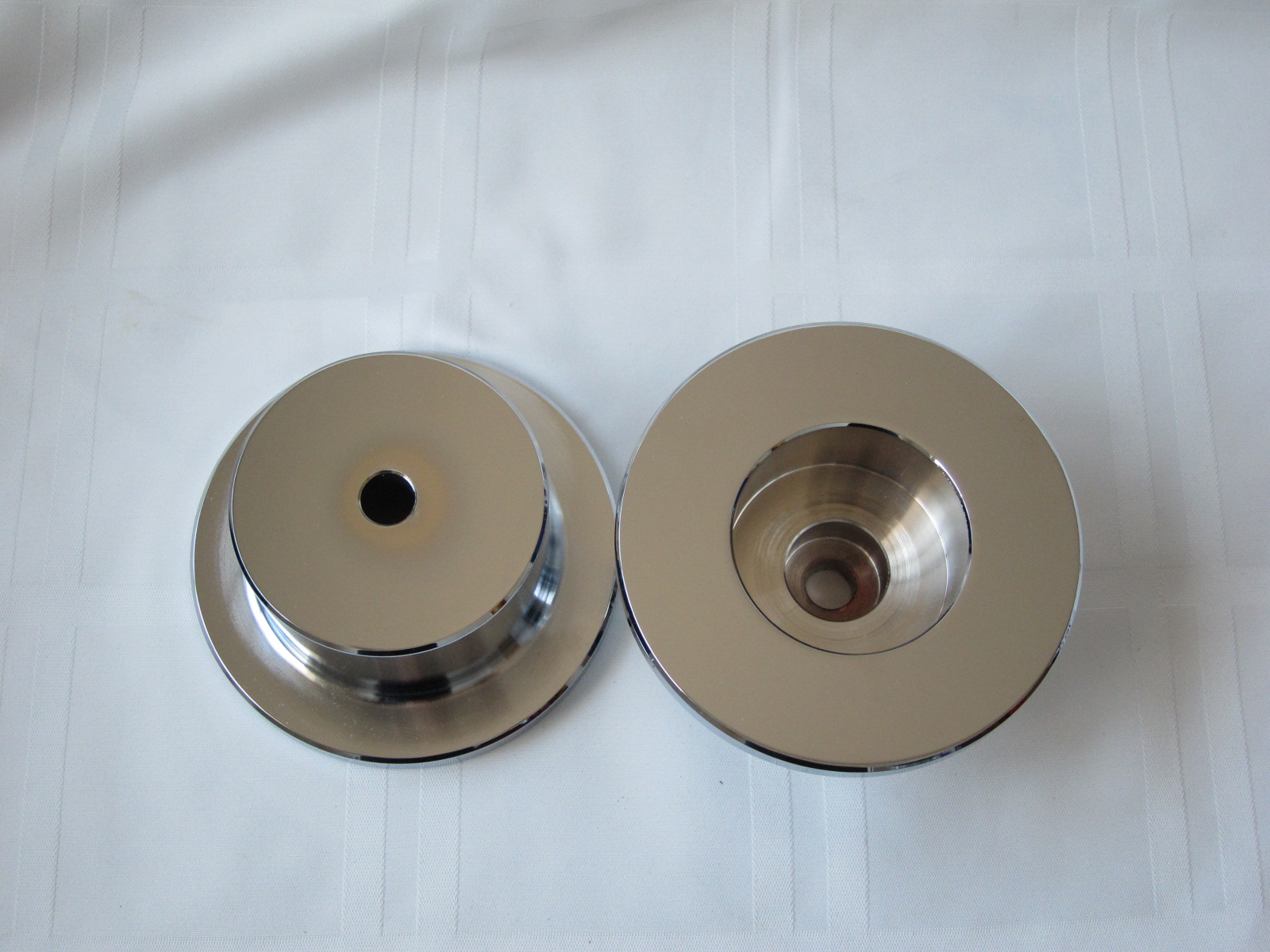 Picture Description Dash Size Price Finishing Bdeepcup Deep cup for bomb 1 5/8" hole, 4.5" OD $128.00 Raw BdeepRcup Deep reverse cup for bomb 1 5/8" hole, 4.5" OD $128.00 Raw Bextendedcup shollow cup extended for bomb 1 5/8" hole, 4.5" OD $130.00 Raw Bdeepcupchrome Deep cup for bomb chrome 1 5/8" hole, 4.5" OD $160.00 Chrome BdeepRcupchrome Deep reverse cup for bomb chrome 1 5/8" hole, 4.5" OD $160.00 Chrome Bdonut fat donut for bomb, 5/16 thick 1 5/8" hole, 4.5" OD $38.00 Raw Bdonutchrome fat donut for bomb, 5/16 thick, chrome 1 5/8" hole, 4.5" OD $60.00 Chrome Bprecutcoils 0.5 Ton Precut, 2 flat sides Tall 7.5" high, 3" ID $220.00 Black Bfullstackcoils 0.5 Ton full stack, 1 flat side Tall 12" high, 3" ID $250.00 Black Bstockcoils 0.5 Ton Precut, 1 flat side Tall 17" high, 3" ID $180.00 Black Bprecutcoilschrome 0.5 Ton Precut, 2 flat sides Tall 7.5" high, 3" ID $280.00 Chrome Bfullstackcoilschrome 0.5 Ton full stack, 1 flat side Tall 12" high, 3" ID $420.00 Chrome The above unit price is subject to change without notice, and the actual price is based on the order size.