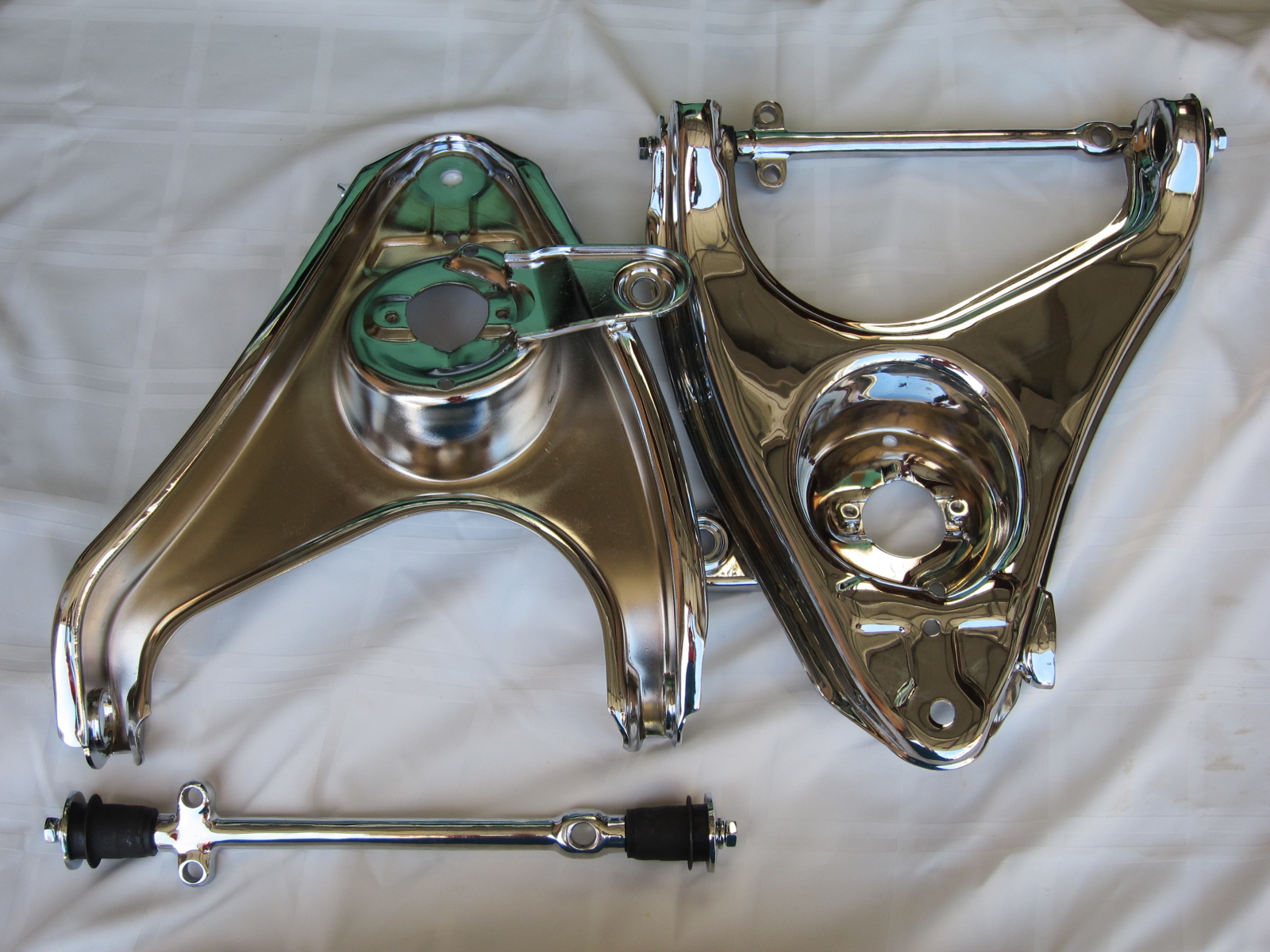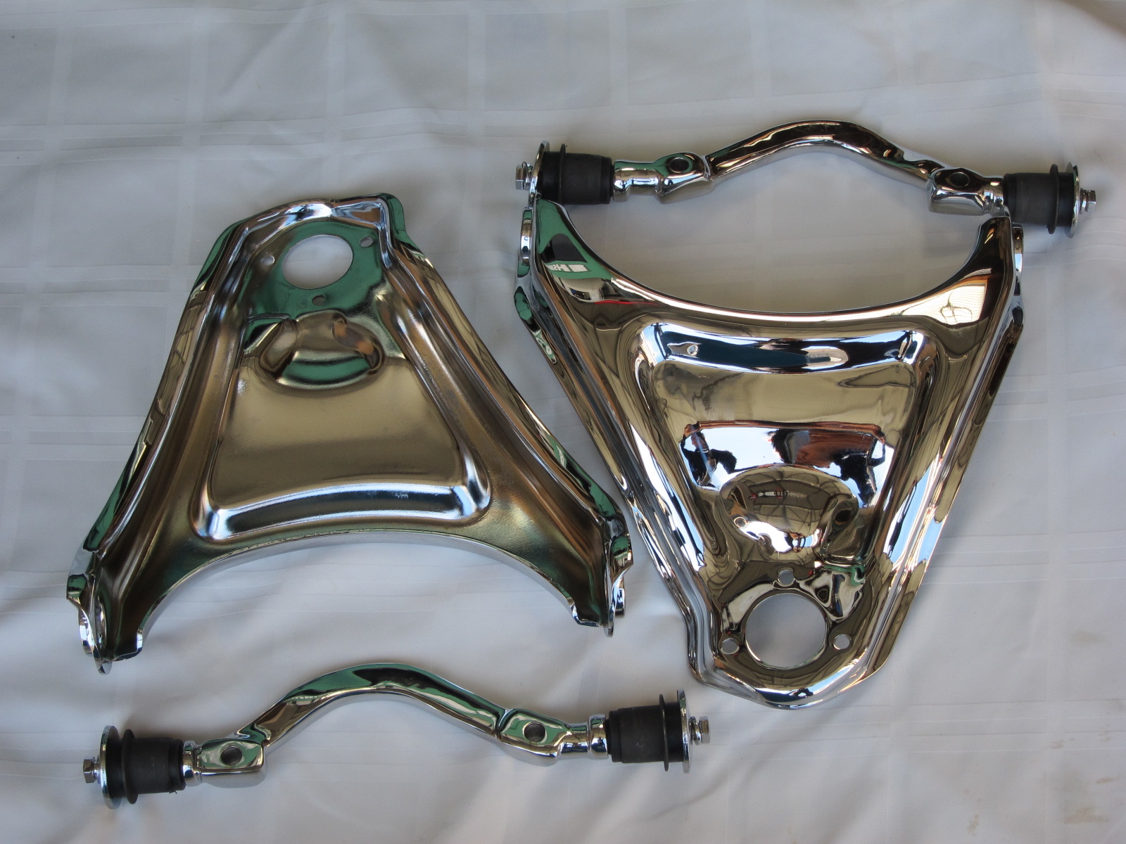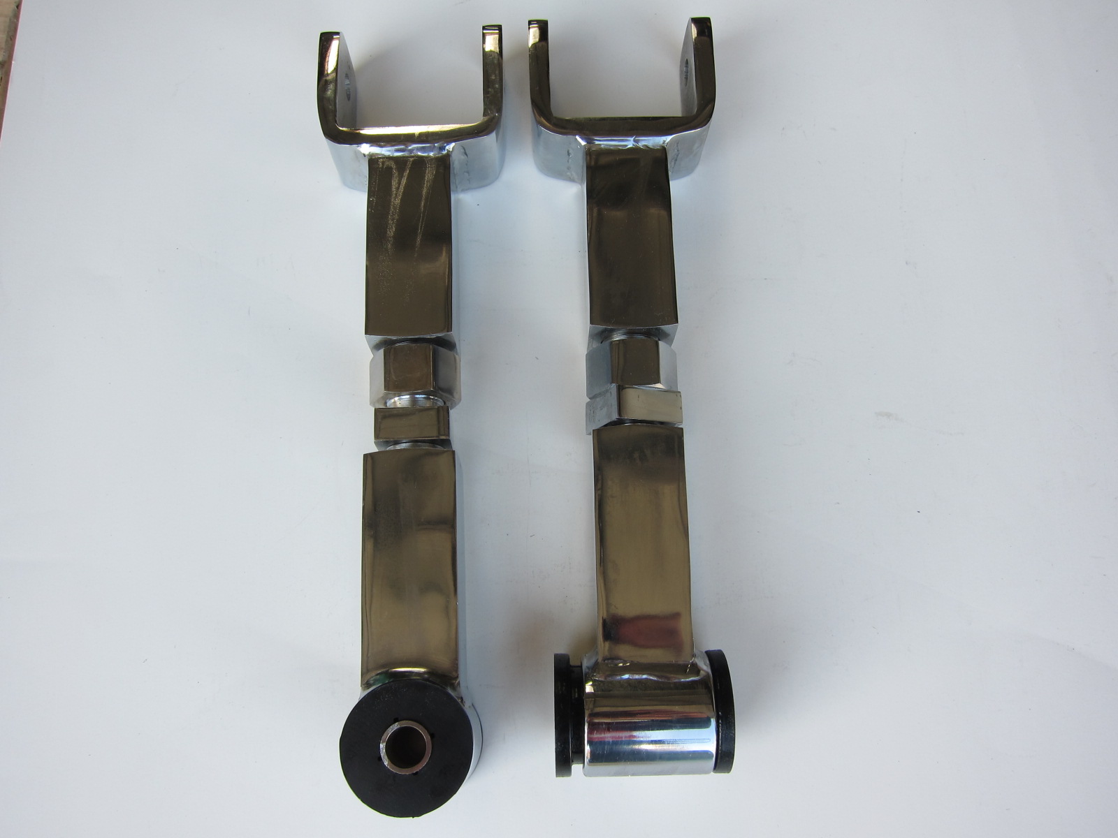 Picture Description Dash Size Price Finishing ImpalaCoil1 1 ton precut 2 edges flat Tall 7.5", Standard $260.00 chrome ImpalaCoil2 1 ton full stack, top flat Tall 12", Impala 58-64 $200.00 black ImpalaCoil3 1 ton full stack, top flat Tall 12", Impala 58-64 $400.00 chrome ImpalaCoil4 2 ton precut, top flat Tall 8.5", Impala 58-64 $150.00 black ImpalaCoil5 2 ton precut , top flat Tall 8.5", Impala 58-64 $290.00 chrome ImpalaCoil6 2 ton full stack, top flat Tall 12", Impala 58-64 $205.00 black ImpalaCoil7 2 ton full stack, top flat Tall 12", Impala 58-64 $410.00 chrome ImpalaCoil8 3 ton precut, top flat Tall 8.5", Impala 58-64 $160.00 black ImpalaCoil9 3 ton precut, top flat Tall 8.5", Impala 58-64 $280.00 chrome ImpalaCoil10 3 ton full stack, top flat Tall 12", Impala 58-64 $210.00 black ImpalaCoil11 3 ton full stack, top flat Tall 12", Impala 58-64 $420.00 chrome ImpalaCoil12 3.75 ton precut, top flat Tall 8.5", Impala 58-64 $190.00 black ImpalaCoil13 3.75 ton precut, top flat Tall 8.5", Impala 58-64 $290.00 chrome ImpalaCoil14 3.75 ton full stack, top flat Tall 12", Impala 58-64 $215.00 black ImpalaCoil15 3.75 ton full stack, top flat Tall 12", Impala 58-64 $430.00 chrome ImpalaCoil16 3.75 ton full stack, top flat Tall 12", Impala 58-64 $700.00 Gold-Plated ImpalaCoil17 4.5 ton full stack, top flat Tall 12", Impala 58-64 $225.00 black ImpalaCoil18 4.5 ton full stack, top flat Tall 12", Impala 58-64 $4405.00 chrome ImpalaLowControlArmsRaw Lower control arms & shafts Chevrolet Impala 58-64 $215.00 Raw Impala Low Control Arms Black A set of lower control arms black Chevrolet Impala 58-64 $225.00 Black Impala Low Control Arms Chrome Lower control arms & shafts Chevrolet Impala 58-64 $750.00 Chrome Impala Low Control Arm Shaft Raw Lower arms shafts & bushing Chevrolet Impala 58-64 $120.00 Raw Impala Low Control Arm Shaft Chrome Lower arms shafts & bushing Chevrolet Impala 58-64 $265.00 Chrome Impala Lower joint Chrome Ball Joint for lower arms Chevrolet Impala 58-64 $215.00 Chrome Impala Low Control Arm Bushing Impala lower control arm bushing A set of 4 $25.00 Raw Impala Upper Arms Raw Upper control arms & shafts Chevrolet Impala 58-64 $215.00 Raw Impala Upper Arms Balck A set of upper control arms black Chevrolet Impala 58-64 $190.00 Black Impala Upper Arms chrome Upper control arms & shafts Chevrolet Impala 58-64 $675.00 Chrome Impala Upper Arm Shaft Raw Upper arms shafts & bushing Chevrolet Impala 58-64 $215.00 Raw Impala Upper Arm Shaft Chrome Upper shafts & bushing Chevrolet Impala 58-64 $265.00 Chrome Impala Upper Arms Bushing Impala lower control arm bushing A set of 4 $24.00 Raw Impala Upper joint Chrome Ball Joint for lower arms Chevrolet Impala 58-64 $215.00 Chrome Impala Center linkpitman chrome Manual Center link & Pitman Chevrolet Impala 58-64 Manual $350.00 Chrome Impala Center linkpitman Raw Manual Center link & Pitman Chevrolet Impala 58-64 Manual $150.00 Raw Adjustable Upper Trailing Arms upper adjustable trailing arm & bushing solid bar & heavy duty $375.00 Chrome Adjustable Upper Trailing Bushing 2 bushings for upper trailing arm 1/2" diameter, universal style $25.00 Raw GM Body Lower Control Arms Lower control arms & ball joint 1978-88 Buick, Monte Carlo $195.00 Black GM Body Upper Control Arms Lower control arms & ball joint 1978-88 Buick, Monte Carlo $175.00 Black The above unit price is subject to change without notice, and the actual price is based on the order size.